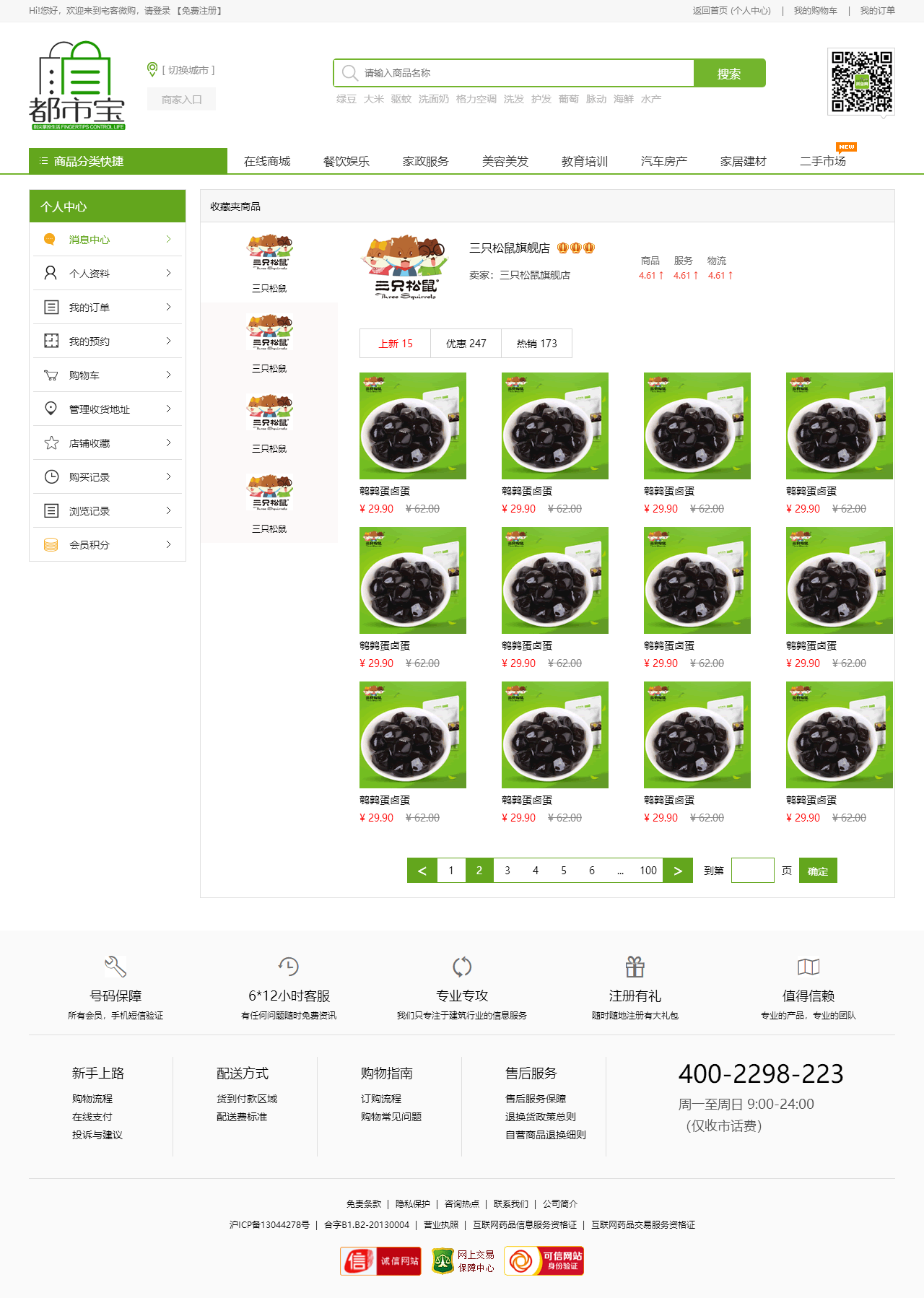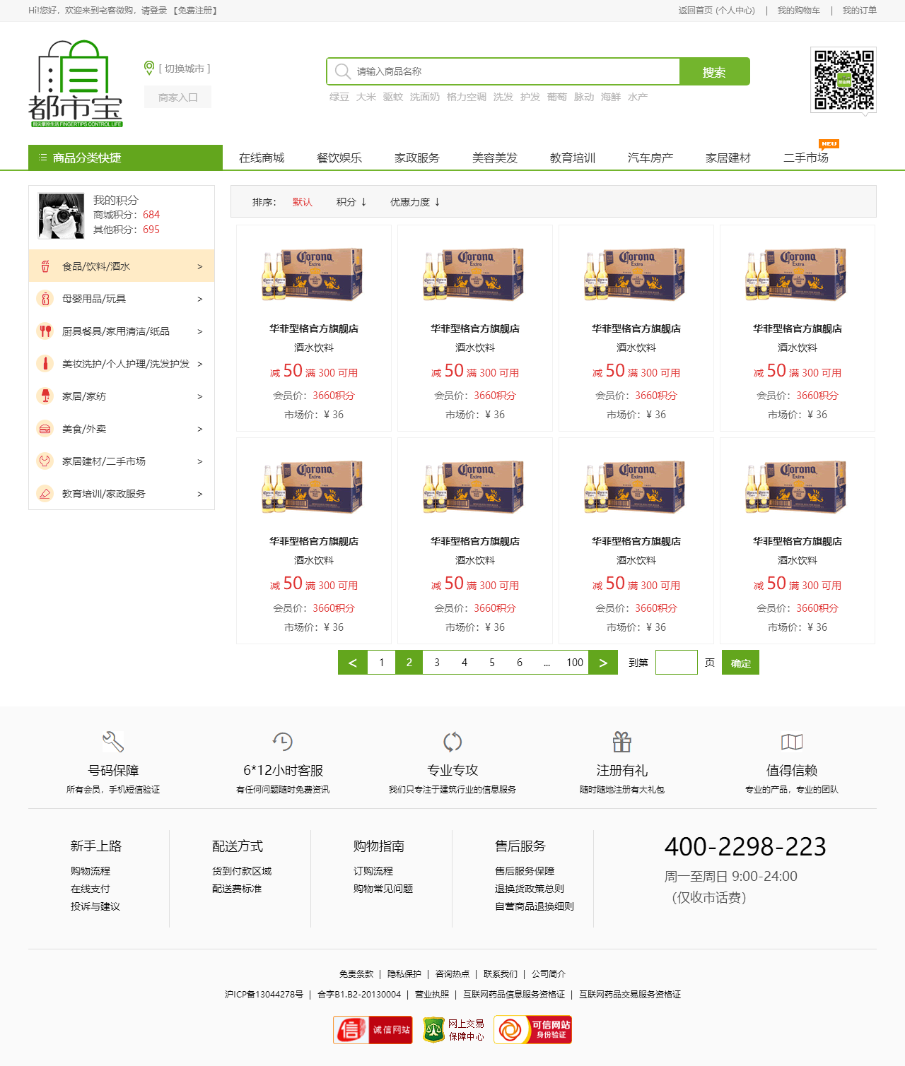 绿色的生活服务平台购物商城模板html源码(购物车数字可变,金额不变)