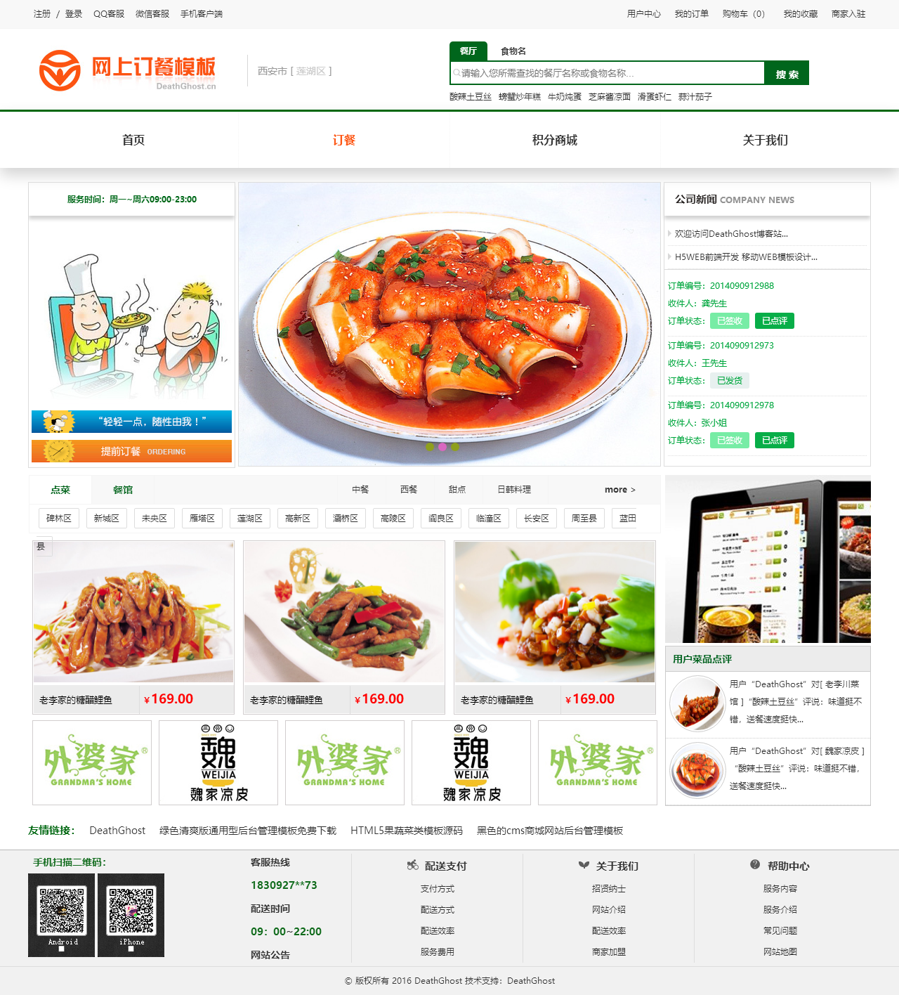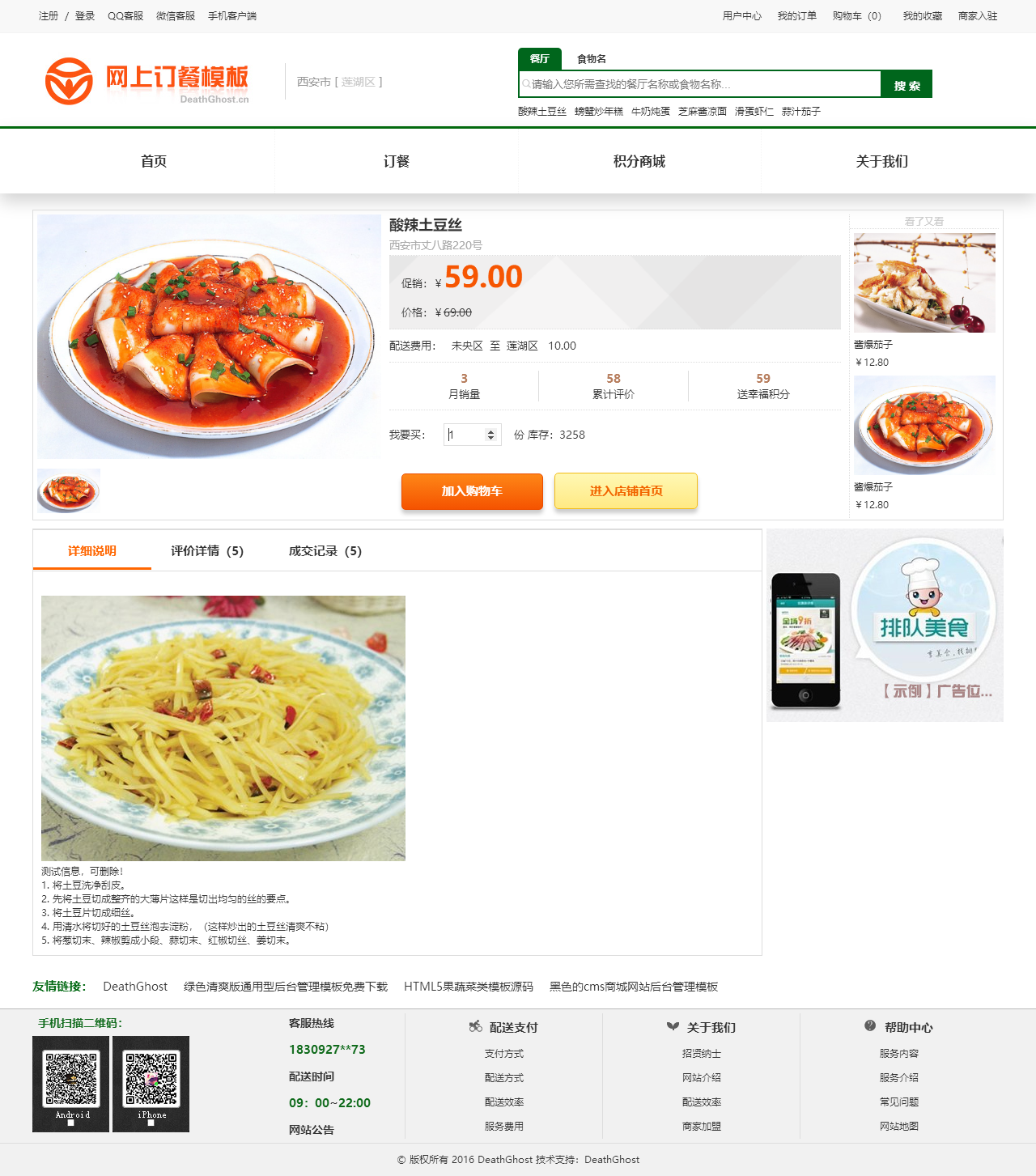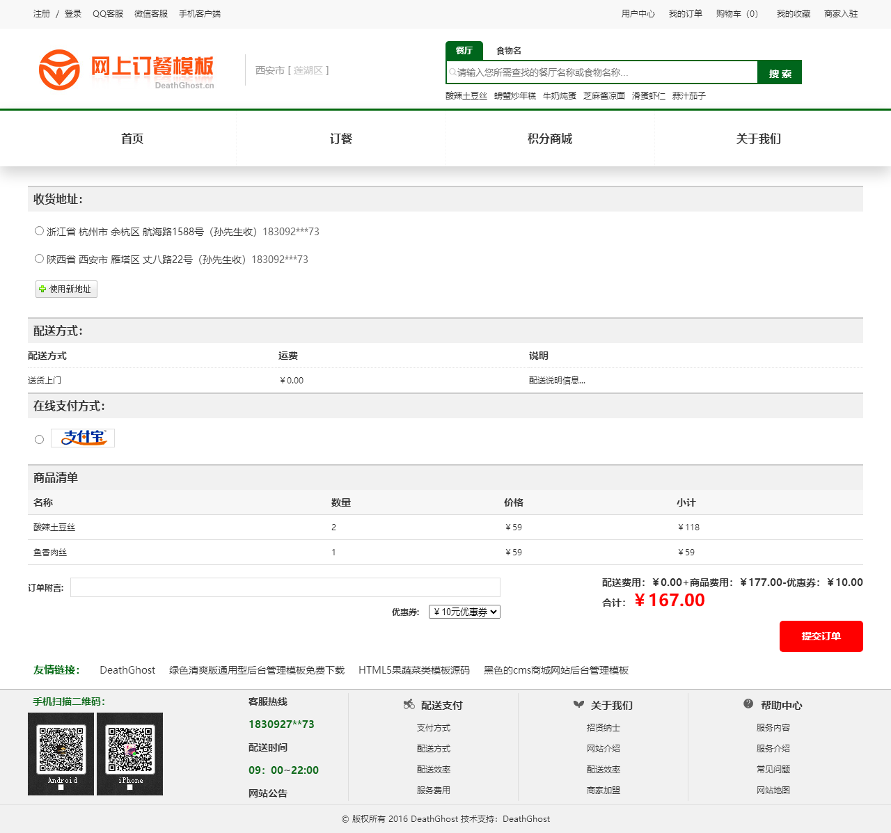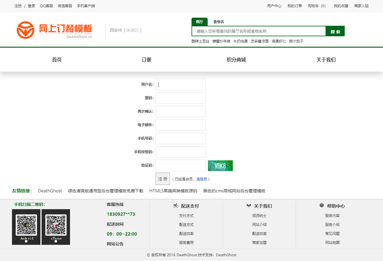 绿色的网上订餐系统模板html源码(购物车数字可变,金额不变)